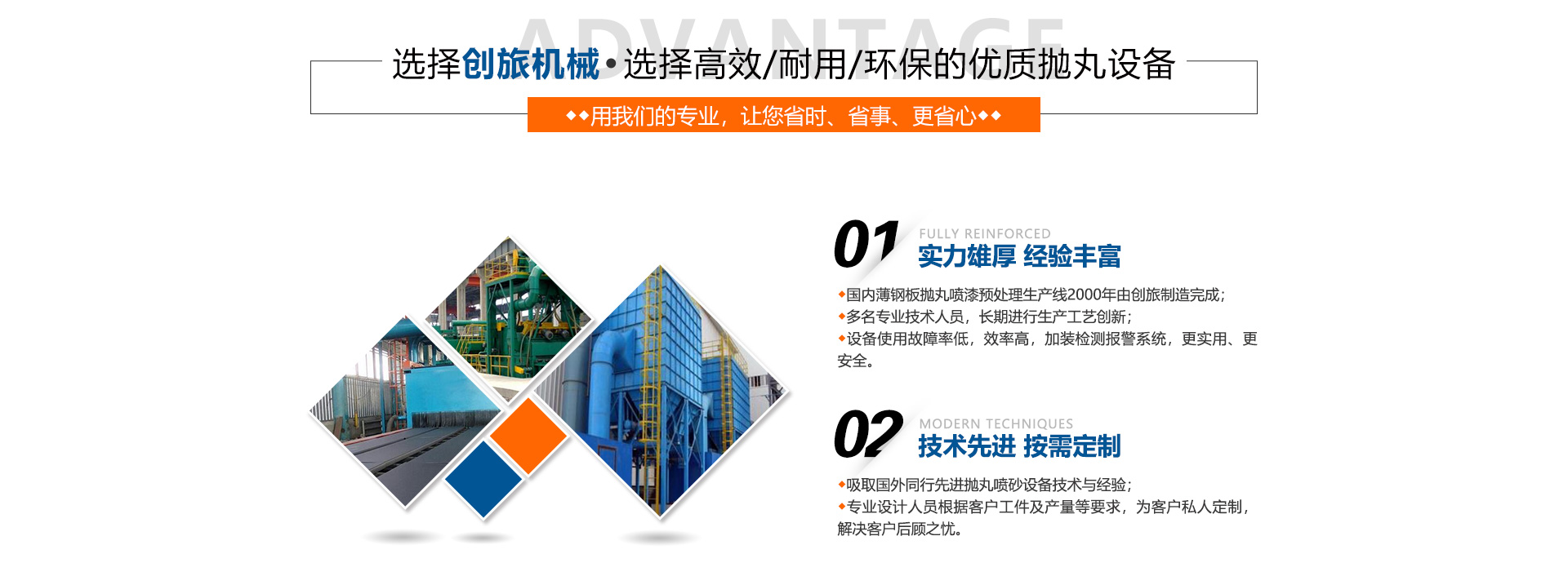 合肥市創(chuàng)旅機(jī)械有限公司是專業(yè)的噴砂房、拋丸機(jī)生產(chǎn)廠家,生產(chǎn)不同型號(hào)不同價(jià)格的江蘇拋丸機(jī)、江蘇 噴砂房、除銹機(jī)、拋丸清理機(jī)械、自動(dòng)噴砂機(jī)械、通風(fēng)除塵設(shè)備、砂處理成套設(shè)備、鋼丸及各種耐磨合金 件的大型專業(yè)化制造企業(yè)。 我公司愿與各行各業(yè)的朋友交往與合作,使您的產(chǎn)品更光彩! 產(chǎn)品有:鋼板預(yù)處理生產(chǎn)線,噴砂房,噴砂機(jī)械,噴砂設(shè)備,拋丸機(jī),拋丸清理機(jī),混砂機(jī),噴丸機(jī) ,拋 噴丸機(jī),履帶式拋丸清理機(jī),鋼板除銹機(jī),鋼材除銹機(jī),板...